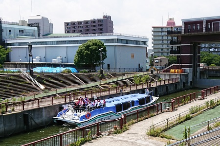 荒川ロックゲートを通船し、ゼロメートル地帯を流れる