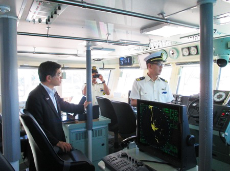 石井大臣は、沖縄県宮古島を訪れ、宮古島海上保安部の長山船艇基地を視察し、職員の激励を行うとともに、クルーズ船の寄港数が急増している平良港において、クルーズ船受入れ機能強化に向けた取組み等を視察しました。