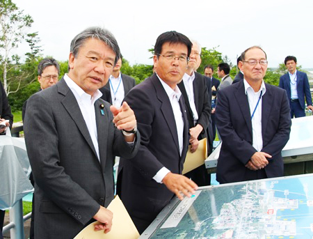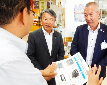 大野政務官は、平成29年7月31日から8月1日にかけて、昨年夏の大雨により被災した国道274号災害復旧現場のほか、十勝地方の穀物の輸入拠点である十勝港や、中山間地域における道の駅等を拠点とした自動運転サービスの実証実験地域に選定された大樹町(道の駅コスモール大樹)を視察しました。