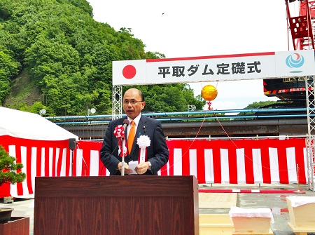 根本政務官は、平成29年7月30日(日)、北海道沙流郡平取町で開催された平取ダム定礎式に出席しました。