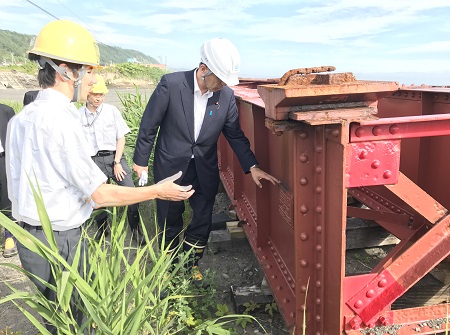 また、二風谷アイヌ文化博物館、JR日高線の被災箇所を視察したほか、日高管内自治体(平取町、日高町、新冠町、新ひだか町、浦河町、様似町、えりも町)の首長等と地元が抱える課題について意見交換を行いました。