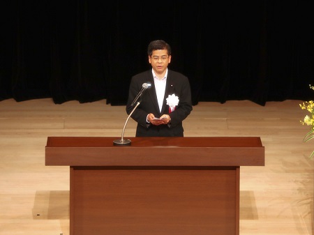 式典で挨拶をする石井大臣