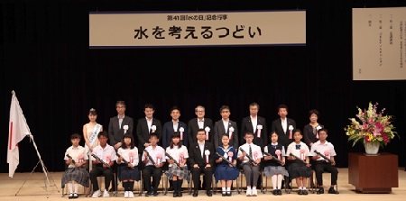 全日本中学生水の作文コンクール受賞者と記念撮影