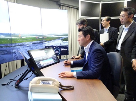 航空分野(電子航法研究所)では、外来の電波を遮断し無線システムの送受信試験に活用している国内最大級の電波無響室、実際のフライトを模擬するシミュレータ、遠隔地から管制業務等を行うための遠隔型空港業務支援システムなどを視察しました。