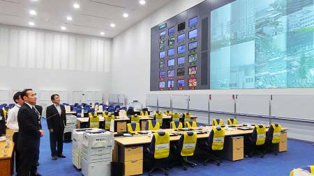 首都直下地震が発生した際、政府現地対策本部が設置される本部棟のオペレーションルームの視察をしました。