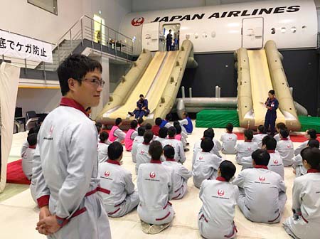 【平成29年9月11日】 日本航空乗務員救難訓練施設を秋本政務官が視察