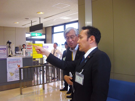 国際線受入状況について説明を受ける簗政務官