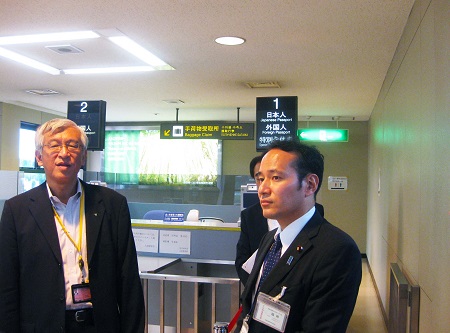 入国審査場の審査状況を視察する簗政務官