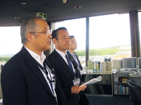 訪日誘客支援空港に認定された青森空港の国際線就航促進の取組や空港ビルの混雑状況、改修計画について説明を受けた後、管制塔で行っている飛行場管制業務を視察しました。