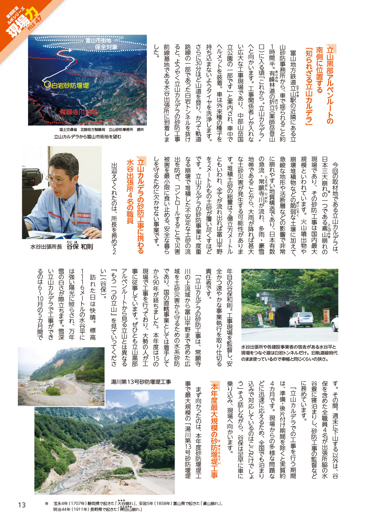 「国土交通」NO.146(2017.10-11) 業務密着ルポシリーズ 現場力 北陸地方整備局 立山砂防事務所 水谷出張所