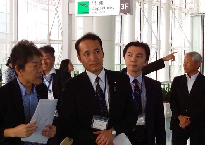 ビジネスジェット専用ゲートの説明を受ける簗政務官