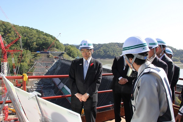 げにより機能向上を図る新桂沢ダムの建設現場や、我が国で開発した合理化施工技術を活用した洪水調節専用ダムとなる三笠ぽんべつダムの建設予定地において、事業の進捗状況や最新のダム技術について視察しました。