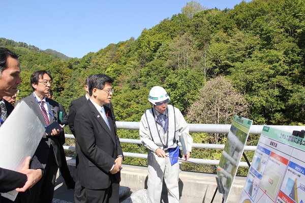 三笠ぽんべつダムについて説明を受ける石井大臣