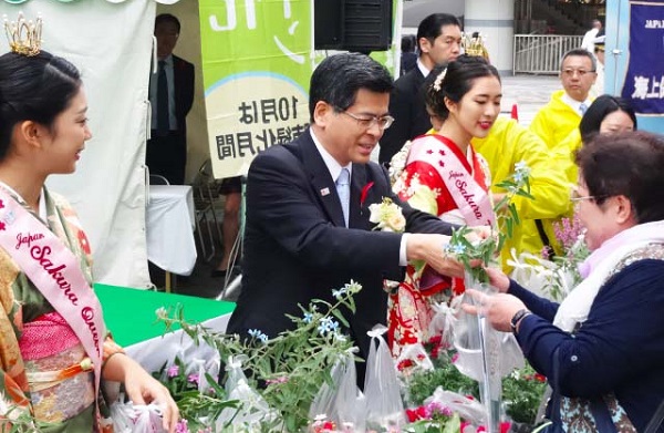 平成29年10月6日(金)、東京都千代田区有楽町駅前広場で、都市緑化月間(10月)に際し、「都市緑化キャンペーン2017」が開催され、石井大臣が花鉢の配布を行いました。