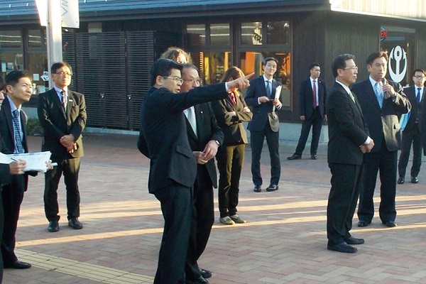 石井大臣は、 「ツール・ド・東北」の5周年を記念し11月2日に開催された「国際サイクリングフォーラム」関係者とともに、女川町の復興まちづくりとして取り組まれた女川駅前の商店施設「シーパルピア」を視察しました。