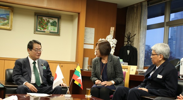 平成29年11月14日(火)、牧野副大臣は、ミャンマー連邦共和国チョウ・ミョー運輸通信副大臣の表敬を受けました。