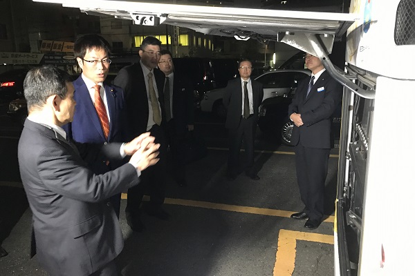 EVバス車両の構造や運行の概要について説明を受けた後、充電の状況を視察するとともに、EVバス車両に試乗しました。