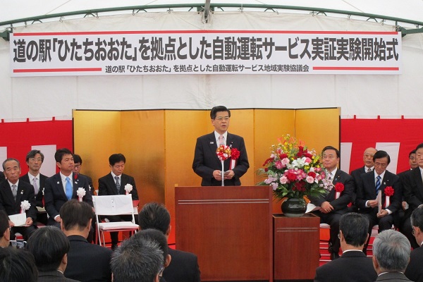 【平成29年11月18日】 道の駅「ひたちおおた」を拠点とした自動運転サービス実証実験開始式に石井大臣が出席
