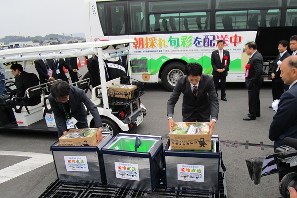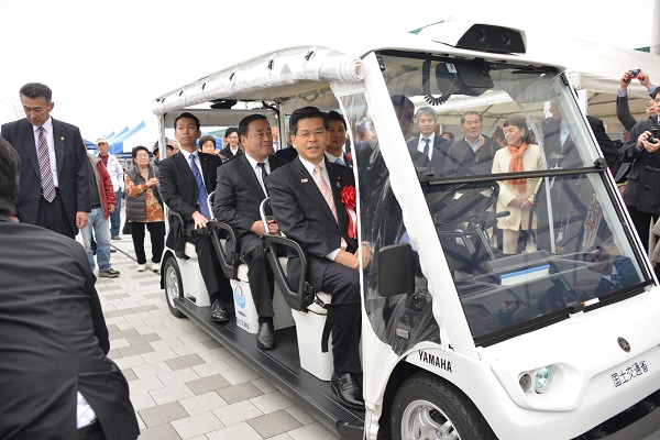 石井大臣は、挨拶のなかで、「高速バスによる農作物の貨客混載事業との連携など、地域の特性に応じた、多様なビジネスモデルの検討を進めていく。」旨、述べたほか、実証実験に使用される自動運転車両に試乗しました。