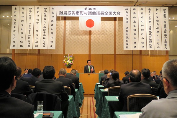 11月21日(火)、あきもと副大臣が「第36回離島振興市町村議会議長全国大会」(主催:全国離島振興市町村議会議長会)に出席しました。