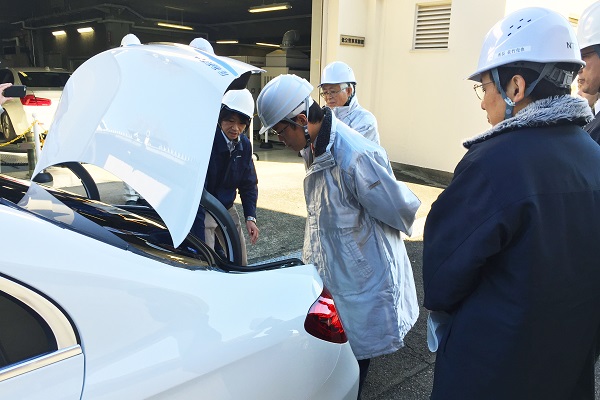 車載式排出ガス分析計を視察する秋本政務官