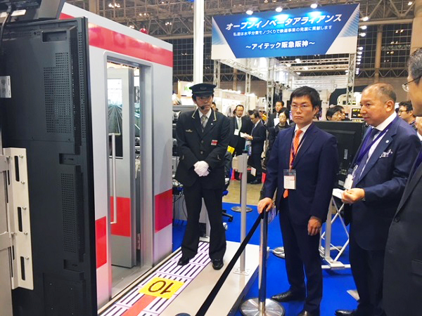 秋本真利政務官は、平成29年12月1日、幕張メッセで開催された第5回鉄道技術展2017を視察しました。鉄道技術展は、「安全・安心・快適・環境・省エネ」をテーマとした鉄道関連の専門展であり、ゲートのない駅の改札コンセプト(三菱電機)や実物の新型台車(日本車輌製造)、大開口ホームドア(東京地下鉄)、軽量型ホームドア(日本信号)、運転士と車掌、運転指令が連携した乗務員訓練シミュレーター(音楽館)等の視察を行いました。