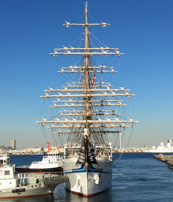 練習帆船「日本丸」出航時の登しょう礼