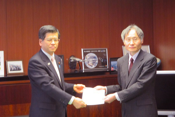 所有者不明土地の円滑な利用を可能にする制度等について、国土審議会土地政策分科会特別部会において審議され、策定された中間とりまとめが、山野目章夫分科会長(早稲田大学大学院法務研究科教授)から石井大臣に対して手交されました。