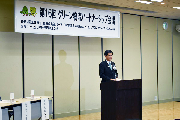 第16回グリーン物流パートナーシップ会議で挨拶する石井大臣