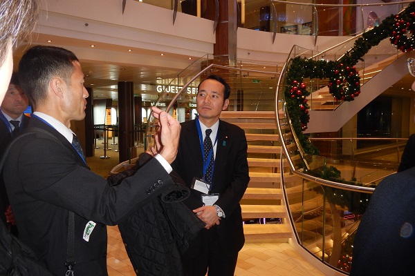 クルーズ船(クァンタム・オブ・ザ・シーズ)の船内を視察する簗政務官
