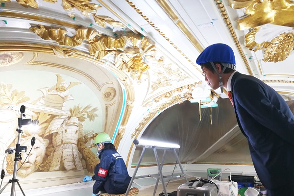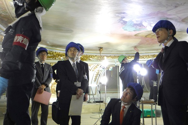 【平成29年12月14日】 迎賓館赤坂離宮 天井絵画修復及び内装改修工事の現場を秋本政務官が視察