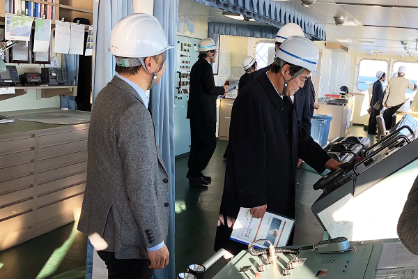 RORO船「北王丸」を視察する牧野副大臣