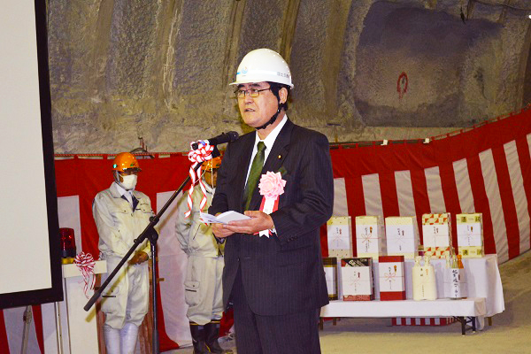 【平成29年12月18日】 伊豆縦貫自動車道 天城北道路 湯ヶ島第三トンネル(仮称)貫通式に牧野副大臣が出席