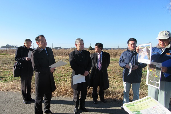 五行川芳賀遊水池工事状況の説明を受ける簗政務官