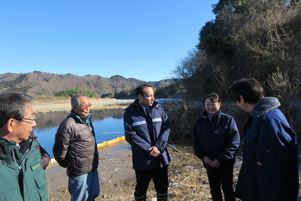 河川事業については、五行川芳賀遊水池において掘削工事の実施状況の説明を受け、また、那珂川掘抜用水樋管の状況を視察しました。