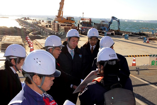あきもと副大臣は、平成29年12月19日、横浜市において、造船現場(ジャパン マリンユナイテッド(株) 磯子工場)及び横浜港を視察しました。