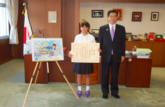 第18回「未来に残そう青い海・海上保安庁図画コンクール」特別賞(国土交通大臣賞)の表彰式が、国土交通大臣室にて行われました。