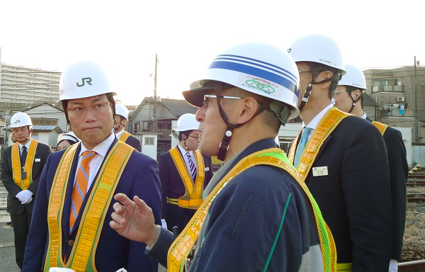尾久車両センターの車両メンテナンスについて説明を受ける秋本政務官