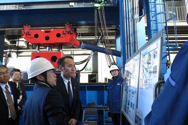 また、土木研究所においては、三次元大型振動台や輪荷重走行試験機、ダム水理実験施設を視察しました。