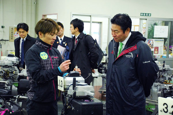 モーターボートの操縦方法について説明を受ける あきもと副大臣