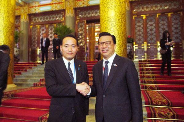 在中国日本大使館を訪問する簗政務官