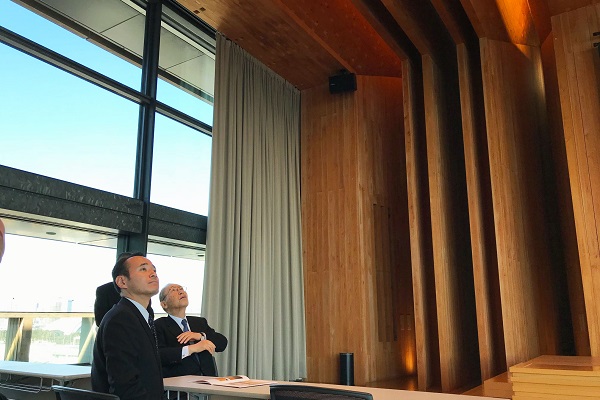 建築物における木材の活用については、江東区立有明西学園の工事現場や、東京木材問屋協同組合の木材会館を視察し、木のぬくもりが感じられるよう木材を建物に活用する場合における防耐火設計上の工夫等について、関係者から説明を受けました。