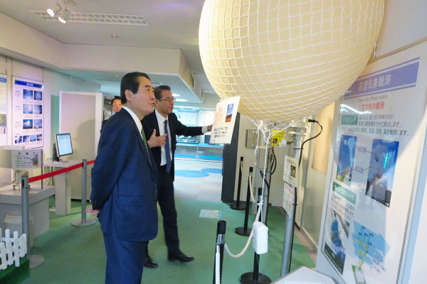 気象科学館を視察する牧野副大臣