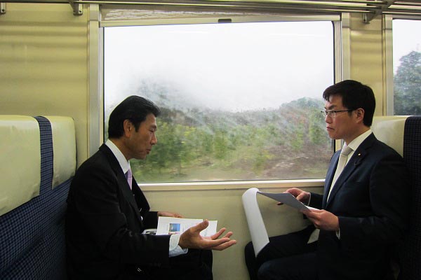 肥薩おれんじ鉄道を視察する秋本政務官
