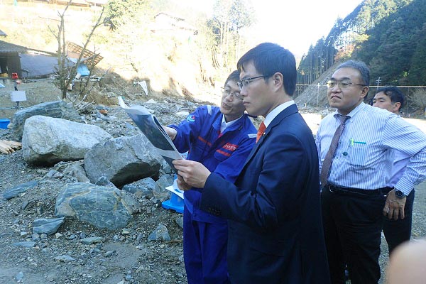直轄砂防事業による復旧状況の説明を受ける秋本政務官(乙石川)