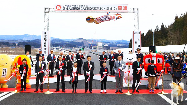 石井大臣は、挨拶のなかで、「本日の開通で大館能代空港と高速道路が直結することになり、広域周遊観光の拡大や秋田県北地域の産業活性化を力強く後押しするものと期待している。日本海沿岸東北自動車道の早期全線開通を目指し、事業を推進していく」旨、述べました。