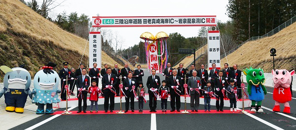 簗政務官は、挨拶のなかで、「本日の開通により、東日本大震災の津波浸水区域を回避し、信頼性の高い道路ネットワークが確保されるほか、地域の復興まちづくりの支援や観光面での復興にも大きく貢献するものと期待をしている。復興道路・復興支援道路について、復興・創生期間内、2020年度までの全線開通を目指し、事業を推進していく」旨、述べました。