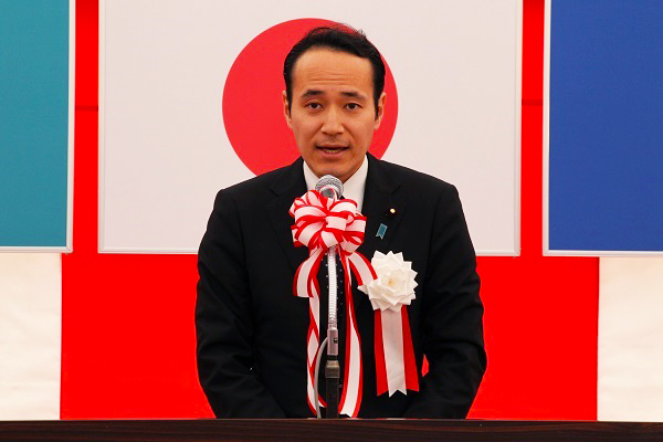 開通式典で挨拶をする簗政務官