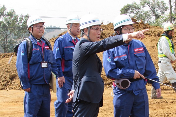 本線部改良工事の説明を受ける秋本政務官