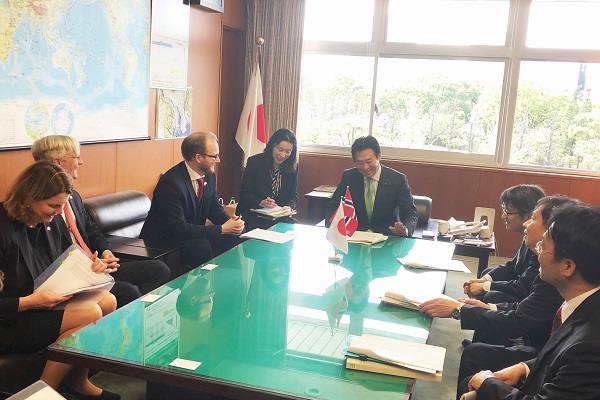 【平成30年4月11日】 ノルウェー王国シモンセン貿易産業副大臣による あきもと副大臣への表敬訪問